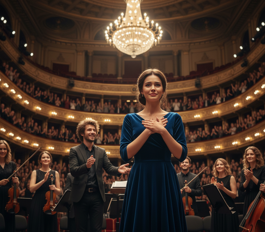 As the final notes of the symphony echoed through the hall, a thunderous applause erupted. The audience was on its feet, moved to tears. Leo, beaming, walked to the podium and gestured for Anya to join him. Her entire body froze. The old panic flared. But then, she saw his eyes, warm and encouraging, and the faces of the orchestra, filled with gratitude.