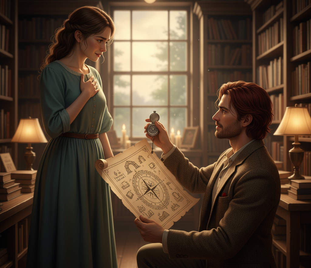 He knelt, not with a flourish, but with a quiet certainty that mirrored the steady rhythm of her own heart. He produced a small, silver compass, its needle pointing unwavering North. “Will you map our life with me, Elara? Will you be my true North?”
